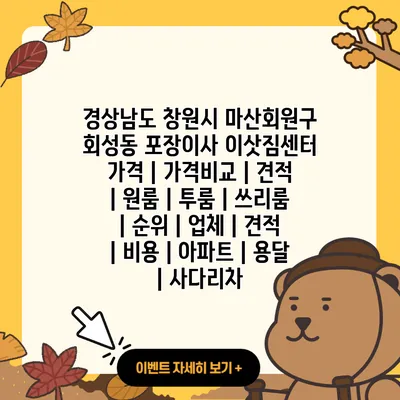 경상남도 창원시 마산회원구 회성동에서 포장이사를 고려할 때 요금 비교는 매우 중요해요. 비용을 이해하고, 적절하게 선택하는 것이 이사를 원활하게 진행하는 첫걸음이니까요. 아래는 요금 비교를 위한 중요한 정보와 팁을 정리한 목록이에요.